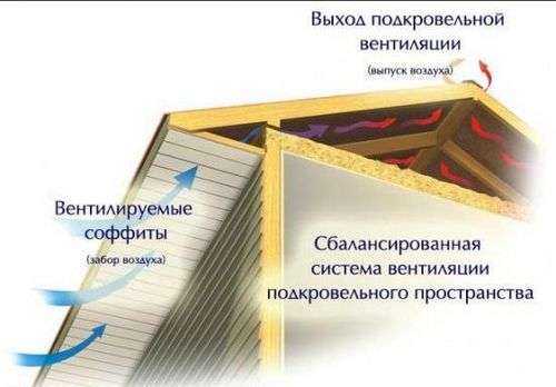- Карнизный. Через карнизные воздух проникает в подкровельное пространство и продолжает движение к коньку крыши вверх, обеспечивая тем самым вентиляцию кровли. Если снизу карниз плотно подшить, вентиляция не состоится. Более того, если этого не сделать, в подкровельное пространство со временем попадут насекомые, мыши, птицы, а выступающую часть стропил придется постоянно обрабатывать специальными составами от увлажнения.