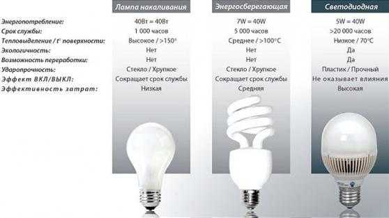 Таблица сравнения характеристик ламп: накаливания, галогеновых, энергосберегающих и светодиодных ламп