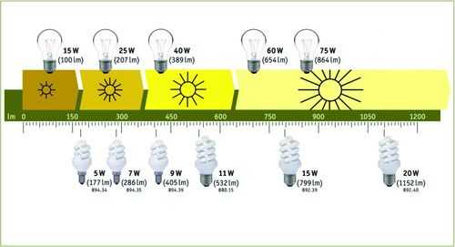 Соответствие мощности светодиодных ламп и ламп накаливания