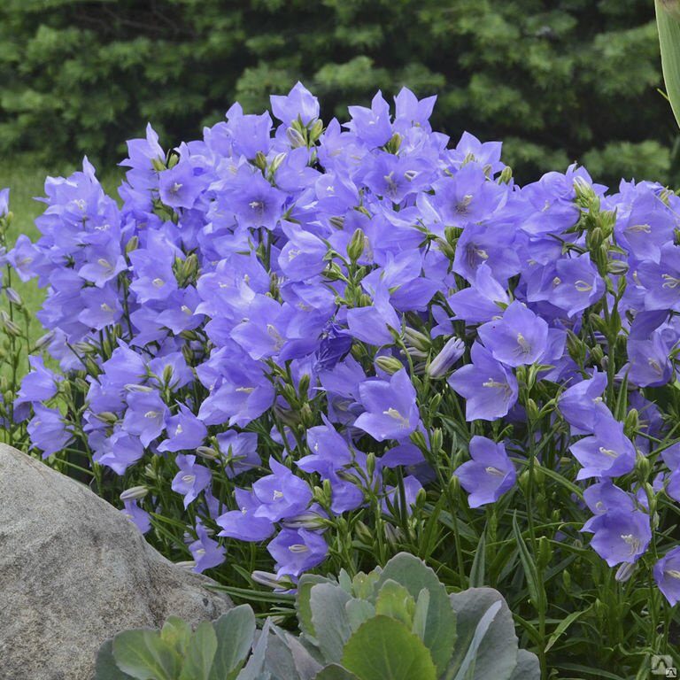 Высота — около 15 см. - Гарганский колокольчик не вырастает выше 10-15 см. Он образует на участке пышные «подушки». Лепестки сложены в звездчатый венчик и имеют серо-голубой оттенок.