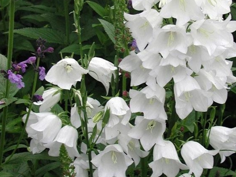 | Кентерберийский колокольчик (двулетники или многолетники) | Солнечный свет: полутень Почва и pH: хорошо дренируемая влажная почва с pH от 6 до 8 Зона устойчивости: от 4 до 10 Использование: бордюрные растения Сезон цветения: поздняя весна или раннее лето | |