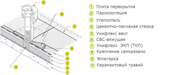 Устройство плоской кровли, структура кровельного пирога, схемы и фото