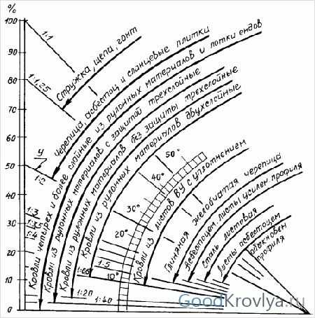 Зависимость крутизны кровли от необходимого количества слоев покрытия: