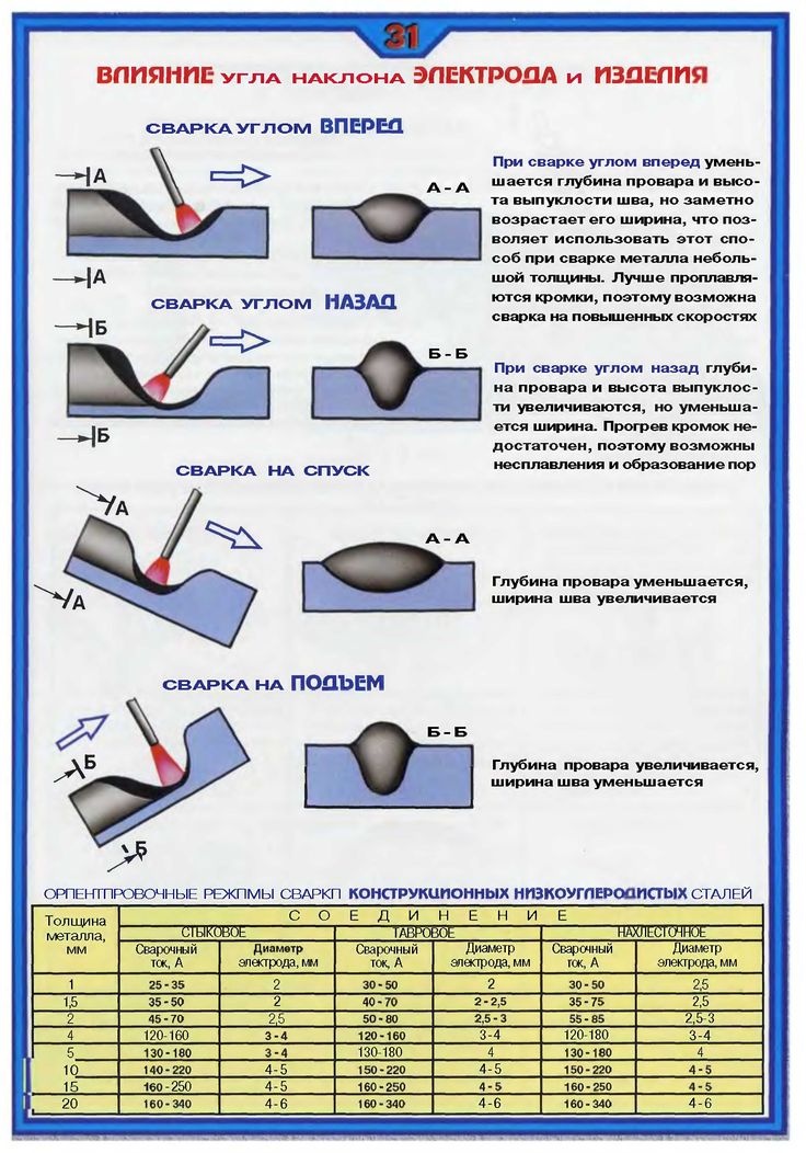 На практике, с приобретением опыта каждый сварщик настраивает эти параметры под себя индивидуально. Для начала попробуйте варить на горизонтальной поверхности.