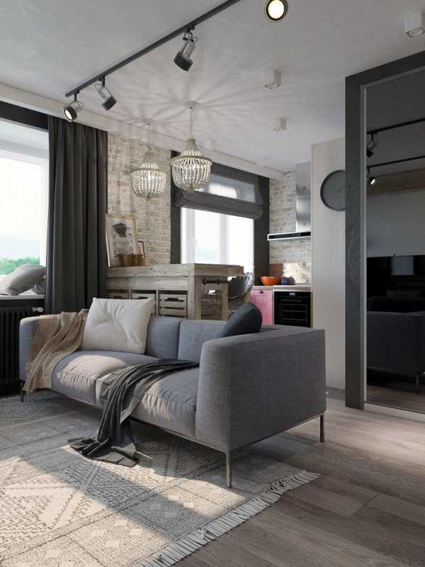 Среди истинно городских, урбанистичных вариантов для дизайна гостиной в хрущевке выделяются непринужденный и грубоватый лофт, футуристический хай-тек, а также лаконичный минимализм. Все эти стили обладают большим преимуществом — они не перегружают пространство деталями и выполняются в сдержанных тонах.