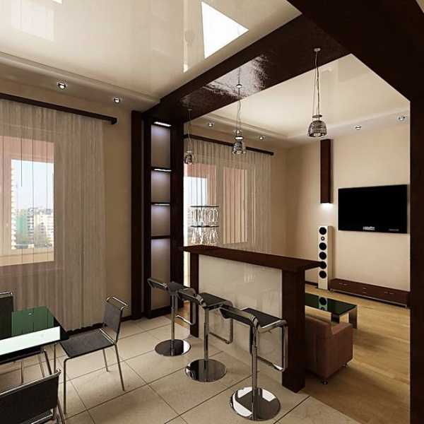 Зонирование гостиной и кухни с помощью барной стойки