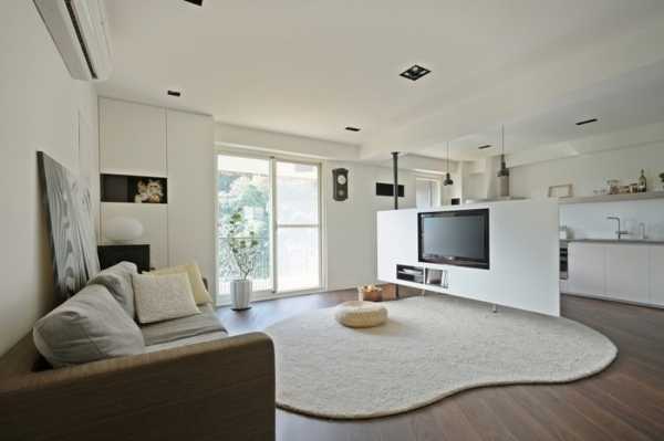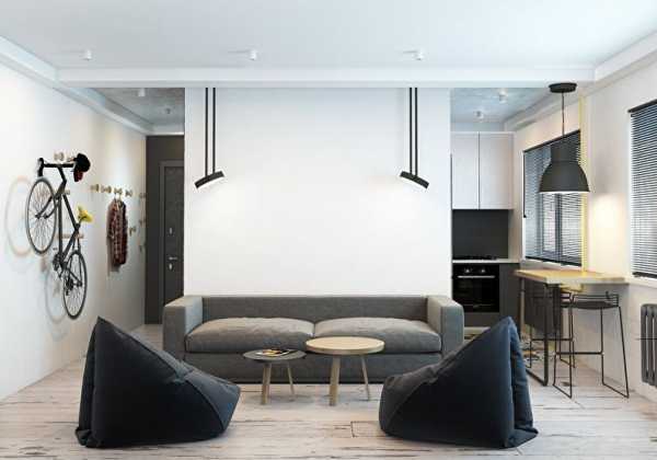 - разделение квартиры на зоны происходит не за счет стен, а за счет грамотного зонирования;