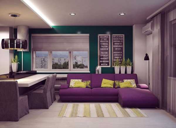 Сиреневые и фиалковые тона встречаются в интерьере не очень часто, но с их помощью можно создать поистине изысканный дизайн гостиной в хрущевке. Очень интересное сочетание фиолетового получается с розовым, белым или светло-серым.