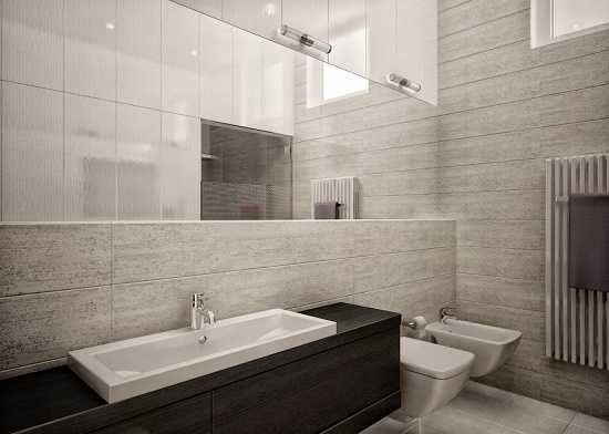 Неброский, но удобный дизайн ванной комнаты совмещенной с санузлом