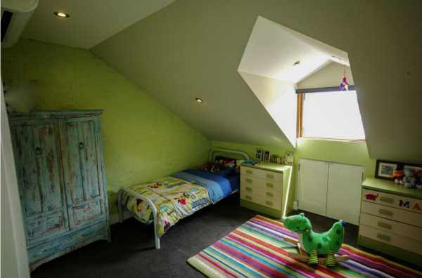 - Комната с низким потолком — самый проблематичный вариант для детской. Если позволяет площадь, лучше не ставить здесь двухъярусные кровати. Зато шкафы, стеллажи и полки можно подбирать высотой до потолка, это поможет визуально приподнять его. В совсем маленьком пространстве стоит поставить кроватку, из-под которой выкатывается дополнительное ложе. Но этот вариант подходит только для двойняшек и погодок, дети с большей разницей в возрасте будут конфликтовать.