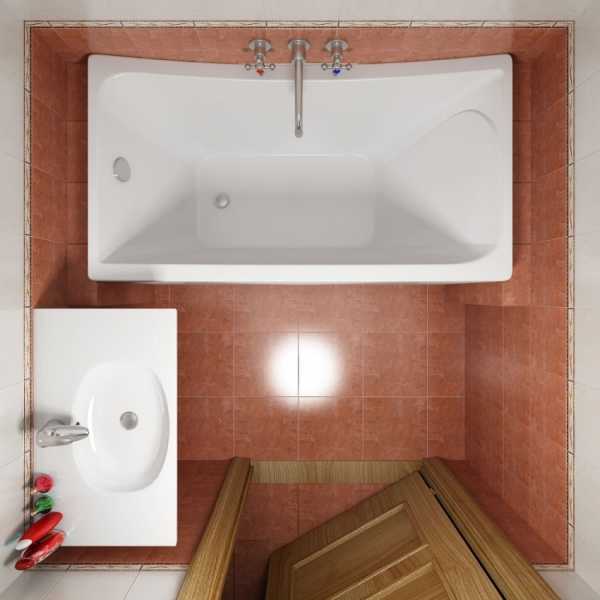 Однако, если располагать ванну у короткой стенки, нужно учесть, что размер ванны не должен быть больше длины этой стенки. Если же найти подходящий вариант не удалось, ванну размещают вдоль другой стены, а у короткой стенки ставят остальные предметы.