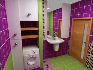 Если у вас существует разделение данного помещения, тогда определим, какие предметы поместить в ванную комнату. Это ванна, стиральная машина, умывальник, шкафчики.