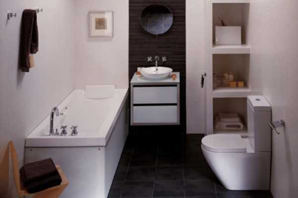 Так, в длинной и узкой комнате в торце помещения оптимальнее расположить ванну или душ, а унитаз и умывальник – возле более длинной стенки.