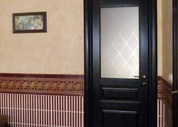 - Темные тона прекрасно дополнят просторные помещения, оформленные классическим стилем. Всегда были и по сегодняшний день популярны цвета (и их разные оттенки): тик, орех, вишня (венге), мербау. Поскольку они придадут ощущение строгости и одновременно некоторой изысканности. А чтобы не создавать чересчур мрачную комнату, предпочтение отдайте дверному полотну декорированному стеклянными вставками (даже небольшие имеют значение), которые совершенно не нарушат концепцию пространства и отлично впустят естественный свет.