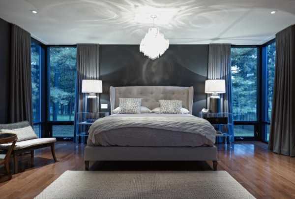 Современный дизайн спальни исключает окна как средство освещения, вместо этого следует применять всевозможные осветительные конструкции и приемы.