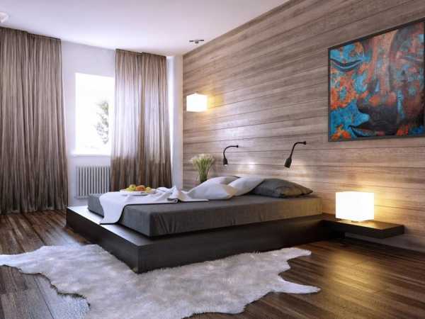 Если говорить о напольной поверхности, то дизайн спальни современных идей почти исключает применение камня. Приветствуется природный массив и ламинат спокойных пастельных оттенков.
