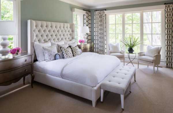 В чём отличие ложа в современной комнате отдыха от традиционной кровати? В фактурном достаточно высоком изголовье. Кому-то нравится приподнимать его слегка, а кому-то до потолка.