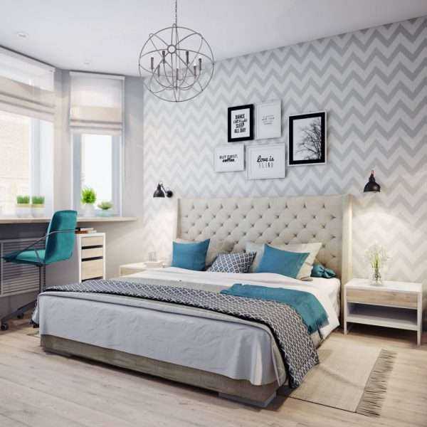 Чтобы избежать монотонности и скукоты в оформлении, в планировку спальни можно добавить фотообои, оригинальные и современные прикроватные тумбы.