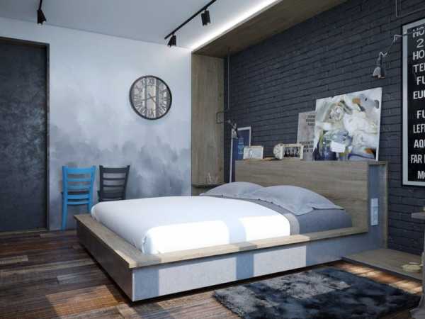 Спальня в стиле лофт. Фото 2018 года