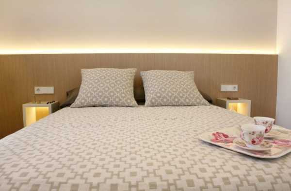 На фото современных спален можно увидеть очень популярное рассеянное освещение на разных уровнях.