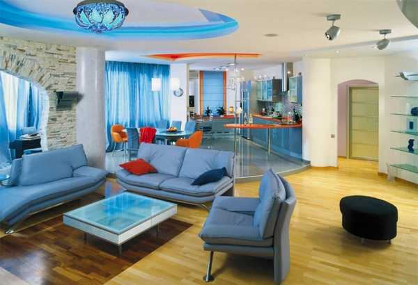 Совет декоратора. С помощью супертонких панелей, толщина которых порядка 1 см, можно создавать компактную, но при этом достаточно мощную систему освещения. Кроме того, с помощью точечных светильников создают модный декор «звездное небо», объединяют декор покрытия пола и потолка общим расположением декоративных и осветительных элементов.
