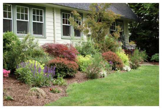 Самые разнообразные растения чаще всего посажены очень близко друг к другу. Это делается для того, чтобы избежать пустынного вида. Кроме этого, дизайнеры избегают того, чтобы кусты или деревья образовали прямую линию, это выглядит неестественно.