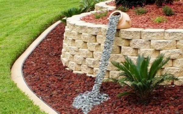 - Искусственный водоем в большом красном желобе из декоративных камней, расположенном у дачного гарнитура, сделает ужин особенно романтическим.