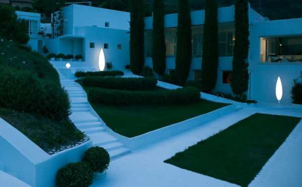 При планировке загородного сада стоит уделить внимание освещению. Чугунные кованные фонарики, развешанные на столбах, или светодиодные хайтековские светильники, воткнутые в землю? Современные технологии могут предложить что угодно. Выбирать только вам.