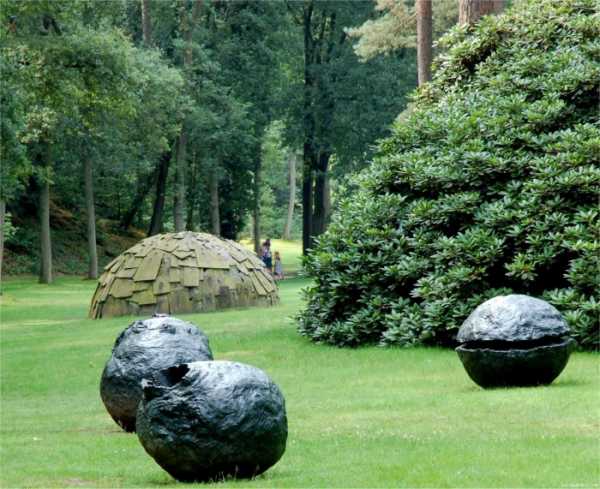 Дизайн парка — предметы декораОсобо эффектно выглядит шар, сплетенный из ивовых веток.