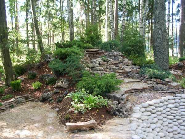 Если же лесной участок не может похвастаться изобилием диких растений, их можно дополнить различными декоративными цветами и кустарниками.