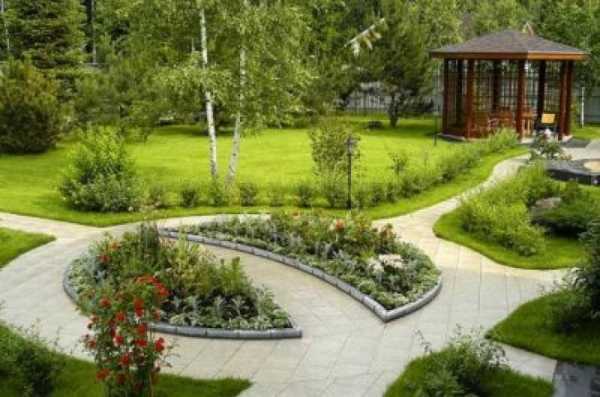 - Четкая геометрия участка. При этом формы не должны быть только с прямыми углами. Напротив, следует отдать предпочтение круглым клумбами или другими дугообразными линиями.