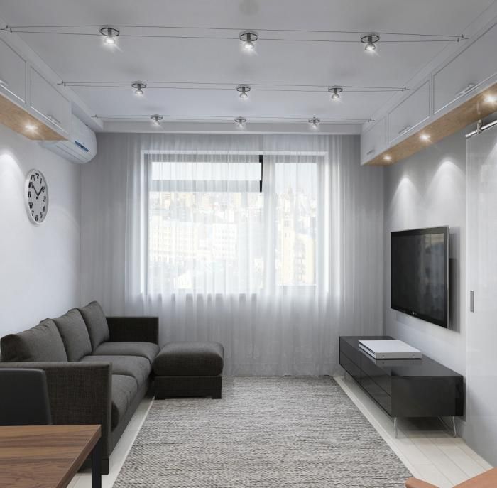 ²Несмотря на такое пространство, места может не хватать, так как должны быть все функциональные зоны. И правильно все распланировать поможет мебель-трансформер. Самое популярное решение – диван-кровать, который объединяет гостиную (зону отдыха) и спальню.