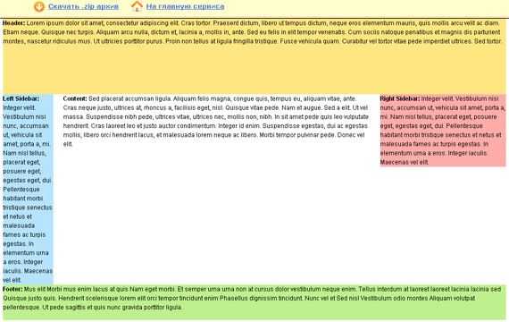 Теперь собственно об онлайн сервисе – это Генератор HTML+CSS шаблонов. Его предназначение состоит в том, чтобы создать базовую разметку (каркас) будущего сайта. В качестве основы применяется блочная верстка (при помощи div-ов).