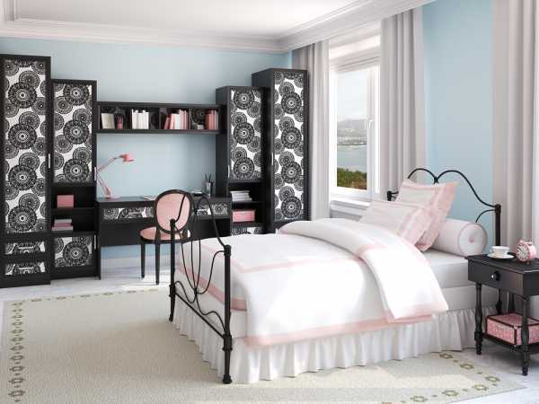 Итак, в дизайне спальни для девочки-подростка обязательно присутствует кровать. Мебельные производители изготавливают гарнитуры для спален, выполненные из металла, дерева и прочного пластика. Матрац для кровати должен иметь средний уровень жесткости – для позвоночника людей в юном возрасте очень полезно спать именно на жестких поверхностях.