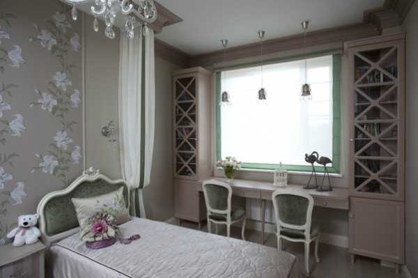Чаще всего спальня девочки совмещена с ее рабочим кабинетом, поэтому нужно предусмотреть и зону со столом и книжным шкафом.