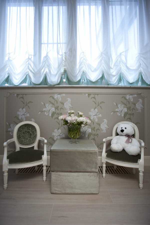 В этом случае в комнате превалирует цветовая гамма нежных оттенков: бежевый, розовый, небесно-голубой, фиалковый, светло-желтый и другие.
