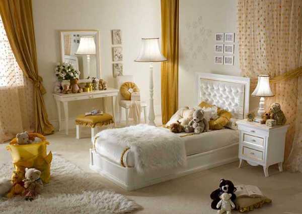 - Классический стиль. Для детской комнаты классика может быть разноображена с помощью позолоченных элементов и фарфоровых статуэток и куколок.