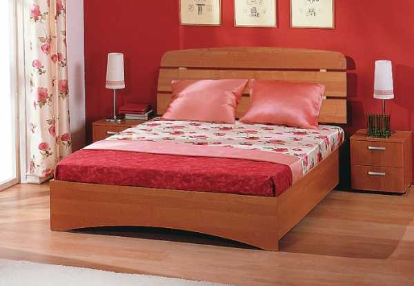 Чтобы подчеркнуть оригинальность дизайна спальни, стоит также подумать о создании выгодных контрастов. Для этого к интерьеру нужно подобрать наиболее уместный оттенок древесины. Так, к примеру, светлая древесина лучше всего сочетается с интерьером, оформленным в белых и голубых оттенках. В то время как облагороженная матовой полировкой мебель из сосны, ореха или бука не накладывает никаких ограничений.