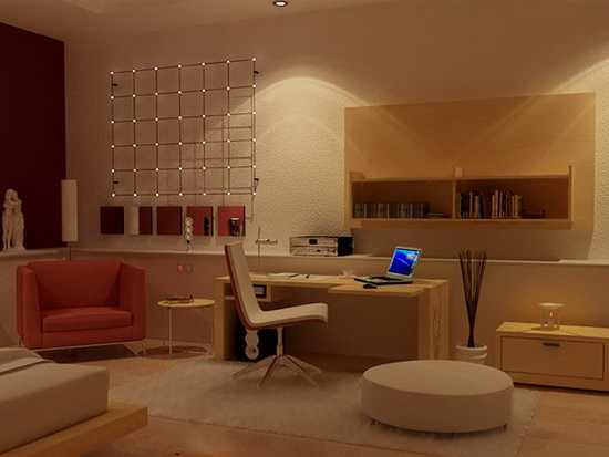 Для зоны, где человек проводит недолгое время перед сном, читая, слушая музыку освещение должно быть интенсивнее, но и так, чтобы не мешать тому, кто лег уже в постель. Сюда подходят различные напольные светильники, торшеры с абажурами. Вполне можно обойтись и настенными бра.