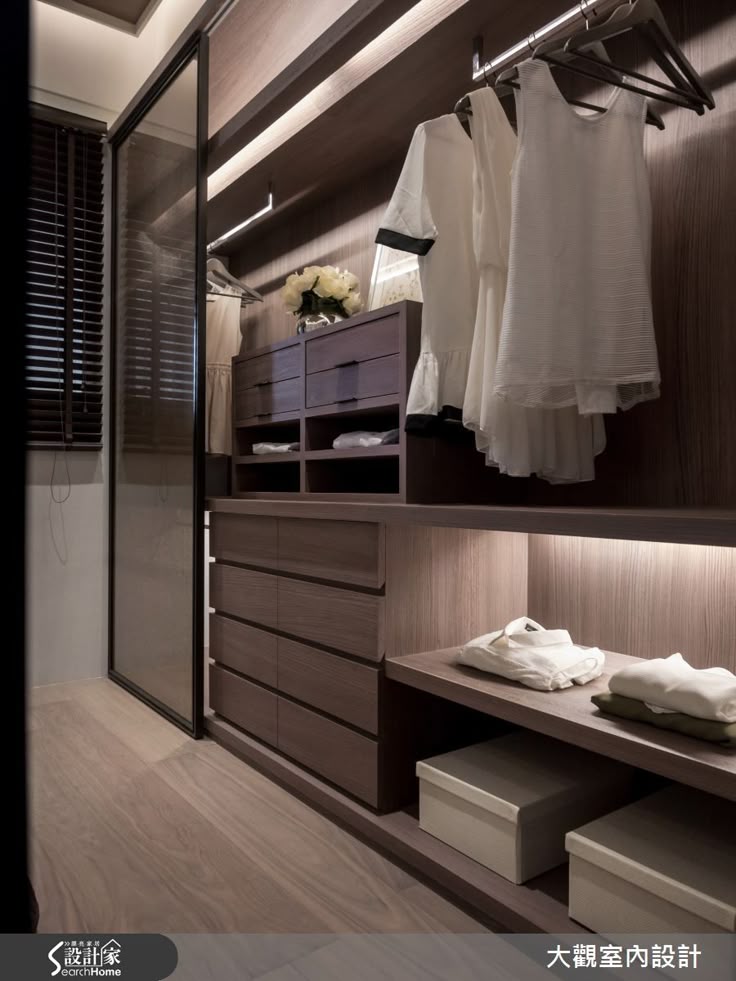 Выбор в пользу линейной гардеробной делается благодаря ее компактности и возможности выполнения в едином стиле со спальным гарнитуром.