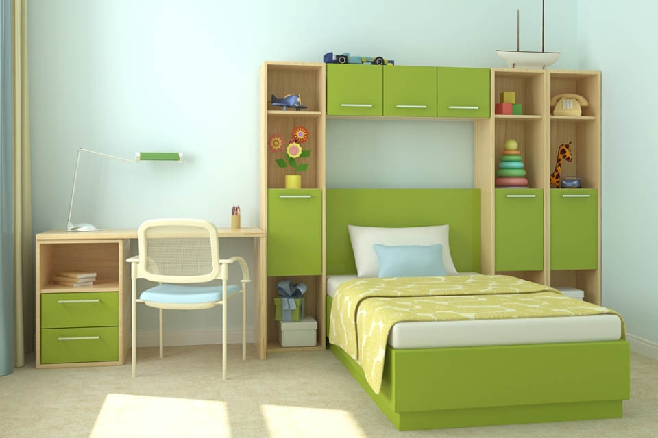 Мебель обязательно функциональная. Например, на первое время ребенку хватит кровати/дивана со шкафом, ящиков/полочек для игрушек. Но, со временем ему нужно будет все больше предметов. Так, понадобится еще докупать шкафы для учебников и книжек, письменный/компьютерный стол и т.п. Отличный вариант мебели здесь – современные трансформеры.