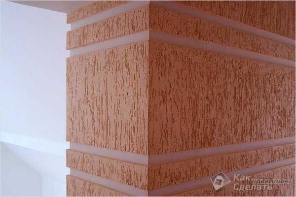Как делается декоративная отделка короедом: обязательно производится захват углов алюминиевым профилем