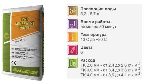Расход смеси указан на упаковкеГотовое покрытие обеспечивает защиту стен дома от разрушения и воздействия погодных условий. Оно способно противостоять даже воздействию агрессивных химических веществ (кислот и щелочей).