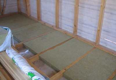 Укладка звукоизоляции МаксФорте ЭкоПлита на пол на лагах