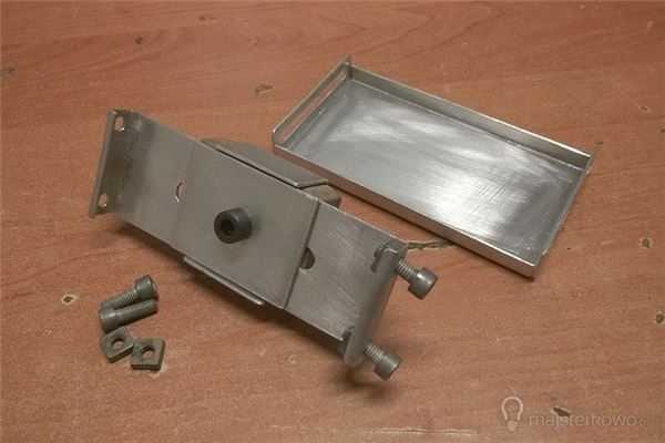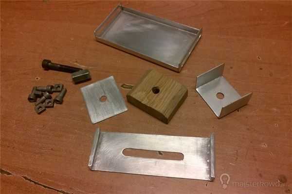 На следующем этапе создания устройства для формирования четких снимков фотоаппаратом вам понадобятся знания в области обработки металла. Изготовил из алюминиевого листа толщиной 2 мм – подготовил элементы, которые после сборки образовали головки с регулировкой, к которым будет прикрепляться камера. Чтобы закрепить соединение головки палкой, я использовал деревянный блок из дерева.