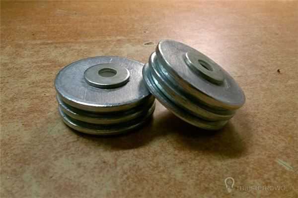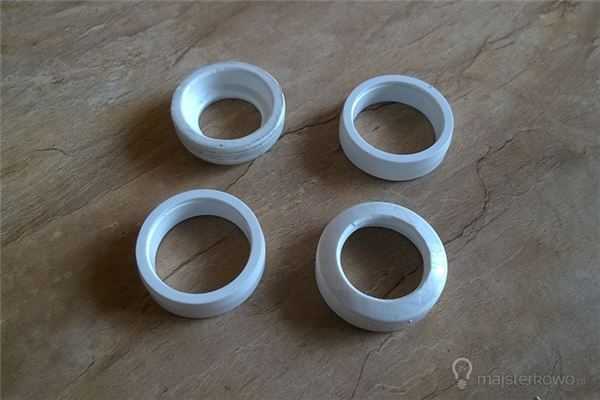 Они были разрезаны пополам, так что каждое кольцо было сформировано. Затем в каждом я просверливал центральные отверстия, соответствующие диаметру стержня, – в моем случае это 16 и 18 мм.