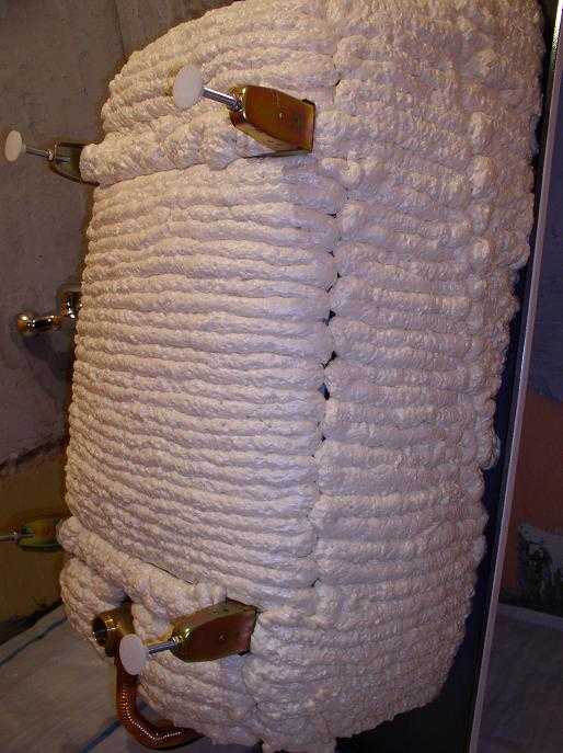 - Способность стальной ванны удерживать тепло и ее шумность достаточно просто устраняются с помощью монтажной пены. Для этого собранную и подготовленную к установке ванну переворачивают вверх дном, смачивают водой и задувают монтажной пеной так, чтобы получилось некоторое подобие термоса. После полимеризации полиуретанового герметика ванну устанавливают на место, а мешающую этому процессу пену просто срезают ножом.