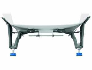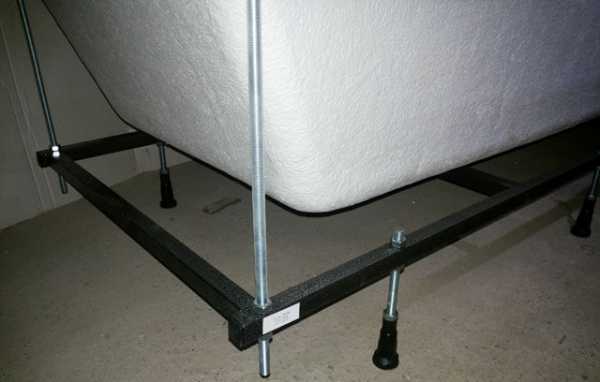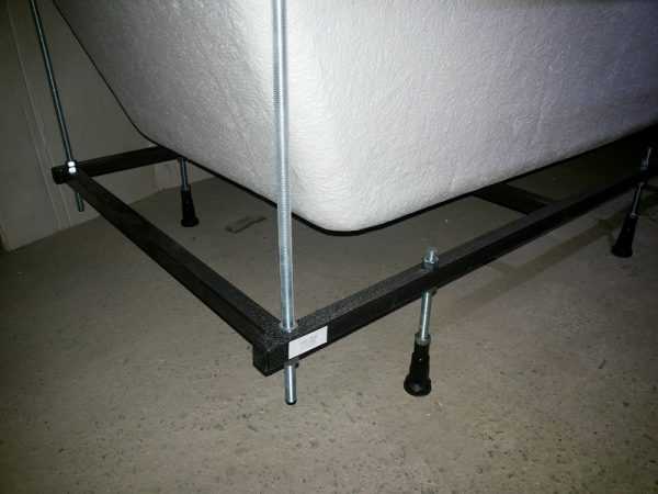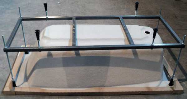Ванны, произведенные из акрила, часто снабжают металлическим каркасом. В нем имеются регулируемые ножки, используя которые подбирают высоту акриловой ванны с каркасом от пола.