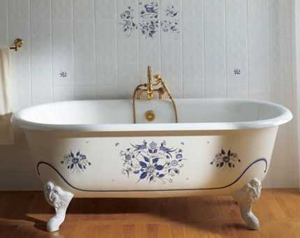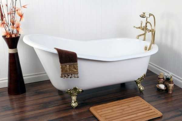 Классическим вариантом считается чугунная ванна, расположенная на опорах витиеватой формы с орнаментом или гравировкой. Имеются модели, установленные на «львиных лапах» или ножках в виде виноградной лозы или изящных лепестков. Опоры должны быть жестко прикрепленными к корпусу. Для их фиксации применяют стяжные болты или металлические клинья.