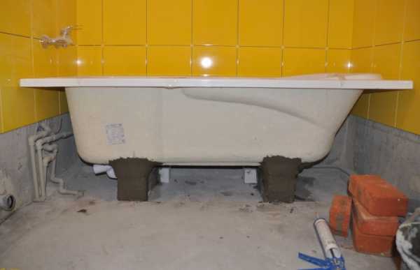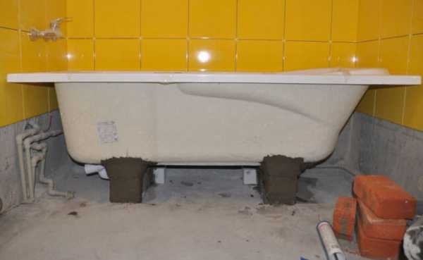 Отдельные модели устанавливают на подиум из кирпичей, блоков или бетона. Это позволяет защитить ванну от деформирования, делает конструкцию максимально устойчивой. При таком методе установки высота может быть любой.